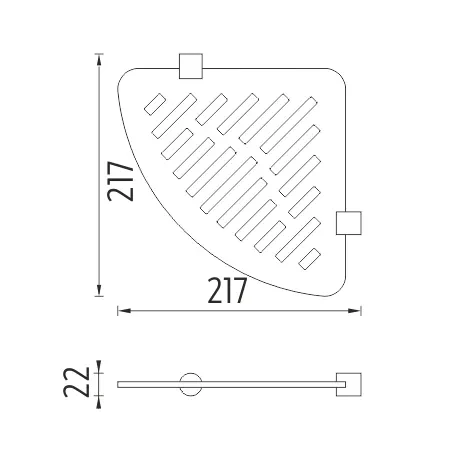 NIMCO Nava ixi Police chróm, čierny mat NA X212 Rohová polica s frézovaním. Materiál Plexiglass. 210x210mm