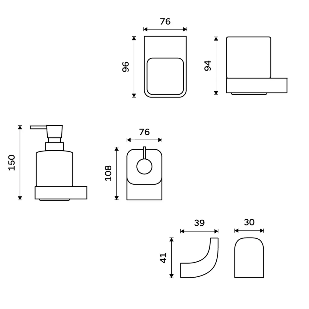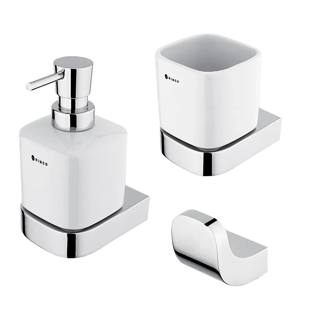 Táto sada kúpeľňových doplnkov obsahuje nasledujúce výrobky NIMCO zo série NIKAU: