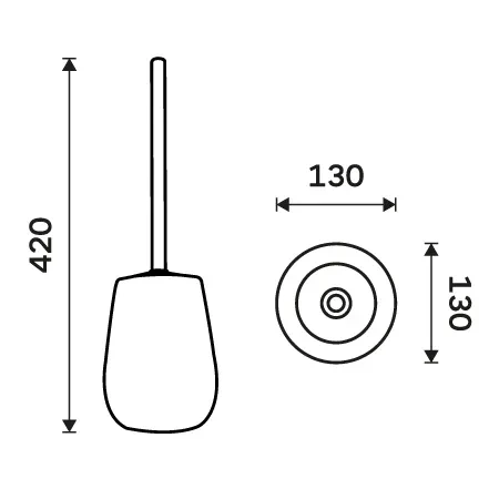 WC kefa / toaletná WC kefa na postavenie vedľa záchodovej misy. Keramická nádobka na štetku tmavo šedá s matným "soft-touch" povrchom. Povrch je hebký, príjemný na dotyk. Rukoväť kefy z nerez ocele so špeciálnou dodatočnou povrchovou úpravou, štetiny čiernej farby.