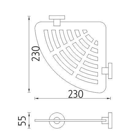 NIMCO Unix nerez Police rohová IXI-NEREZ brúsená nerez UNM X211-10 Rohová polička Plexiglass s frézovaním. Úchyty / brúsená nerez. . Rozmer police 23,5x23,5 cm.