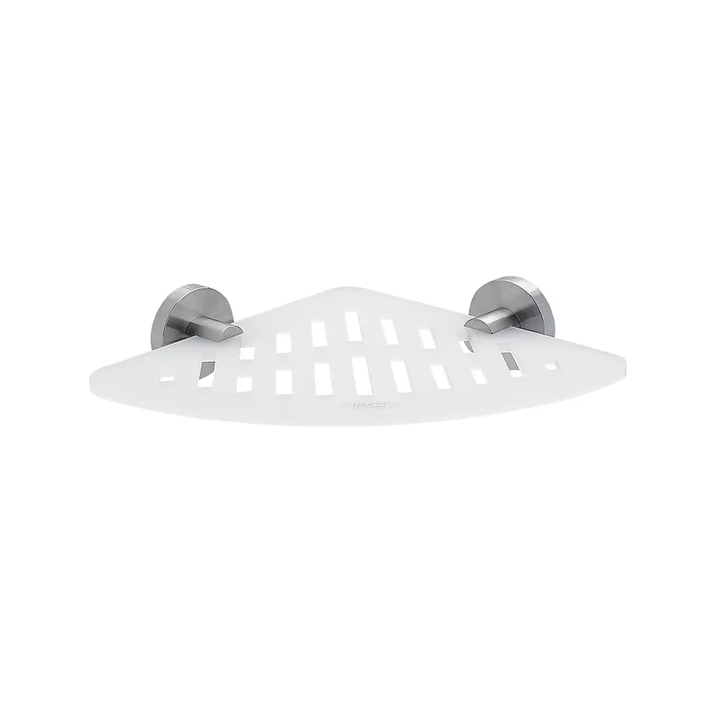NIMCO Unix nerez Police rohová IXI-NEREZ brúsená nerez UNM X212-10 Rohová polička Plexiglass s frézovaním. Úchyty / brúsená nerez. . Rozmer police 23,5x23,5 cm.