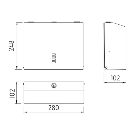 Uchytenie zásobníka pomocou 2-3 skrutiek, podľa potreby. Rozstup medzi 2 hlavnými otvormi pre uchytenie 229-237mm. Súčasťou balenia sú 3 skrutky, 3 hmoždinky, 2x bezpečnostné kľúčik. Odporúčané naplnenie zásobníka je do 2/3. Rozmery papierových uterákov vo skladanom sklade 23-25cm x 11-12cm. Materiál je vysoko kvalitná brúsená nerez oceľ 1.4301. Veľkosť otvoru pre vyťahovanie papierových utierok je 25cm.