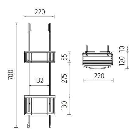 NIMCO Závesná polica dvojposchodová chróm TR 02-26 Drôtená polica na zavesenie do sprchovacieho kúta s dvoma drôtenými koši.700 x 220 x 130 mm