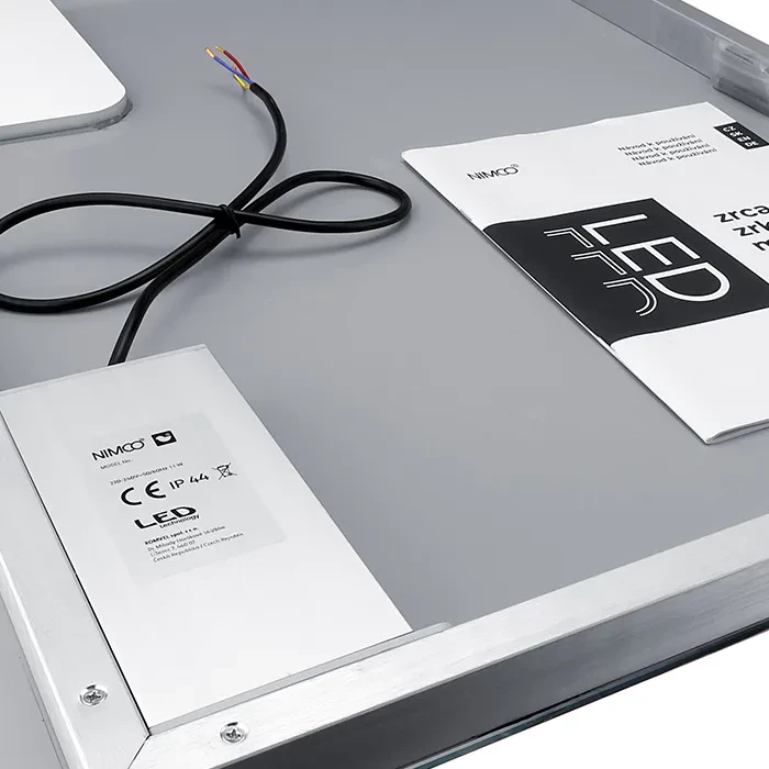 Nová technológia svietenia za použitia akrylátového skla - plexiglass. Konštrukcia je z hliníkového rámu 32x19 mm, sklo zrkadla s hrúbkou 5mm. Zrkadlo je možné uchytiť horizontálne a vertikálne. Pripojenie 220-240 V. Ochrana IP 44. Bez vypínača. Zapojenie do el. rozvodu a zapínanie cez vypínač svetiel v miestnosti. LED čipy s vysokým výkonom. Farebná Teplota denná biela - jasné poludňajšie svetlo. Životnosť LED diód je až 50 000 hodín.