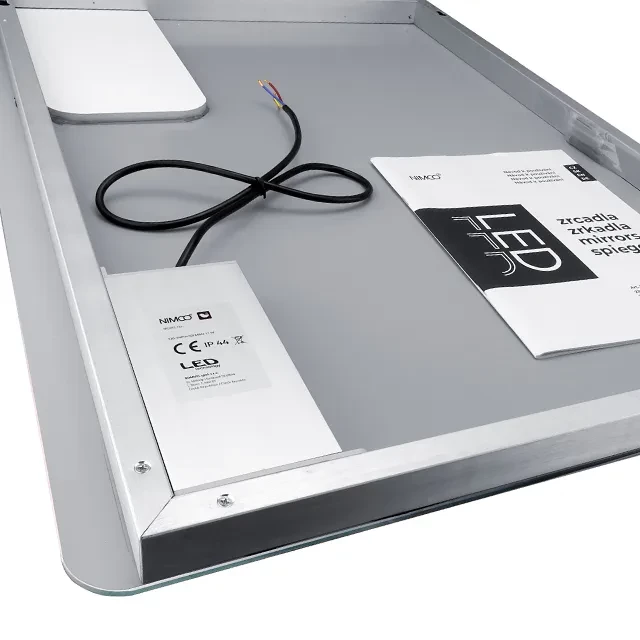 V mieste svietivosti zrkadla je použitá nová technológia svietenie s použitím akrylového skla - Plexiglass umiestneného za sklom. Použité sú LED čipy s vysokým výkonom. Konštrukcia z hliníkového rámu 32x19 mm, hrúbka skla zrkadla 5 mm. Pripojenie 220-240 V. Spínač ON / OFF nie je súčasťou zrkadla. Zapojenie do el. rozvodu. Spínanie zrkadlá cez vypínač svetiel v miestnosti. Farebná teplota svietivosti 6000K denné biela- jasné poludňajšie svetlo. Ochrana IP 44. Lumen 1440, výkon 12W. Životnosť LED diód až 50.000 hodín (3hod / denne = 45 rokov).