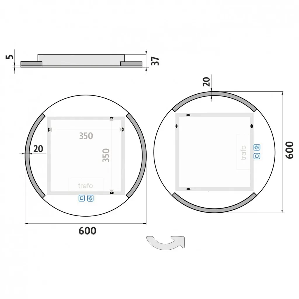Okrúhle zrkadlo do kúpeľne 60 cm s osvetlením, dotykový spínač je skvelým doplnkom do kúpeľne. Zrkadlá do kúpeľne NIMCO vynikajú kvalitným spracovaním a moderným dizajnom. Svietenie za použitia akrylátového skla plexiglass. Konštrukcia je z hliníkového rámu 32x19 mm, sklo zrkadla s hrúbkou 5 mm. Priemer zrkadla 600 mm. Pripojenie 220-240 V. Zapínanie / vypínanie / ovládanie je pomocou dotykového senzora s pamäťou. Možnosť nastavenia farebnej teploty svietenia a intenzity svietivosti. Životnosť LED diód je až 50 000 hodín. Ochrana IP 44.