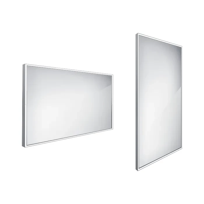 NIMCO Ľad zrkadlo zrkadlo LED 1200x700 rám hliníkový ZP 13006 Kúpeľňové podsvietené LED zrkadlo. Farebná teplota zvolená teplá biela 4000-4500K. Výkon 55 W.