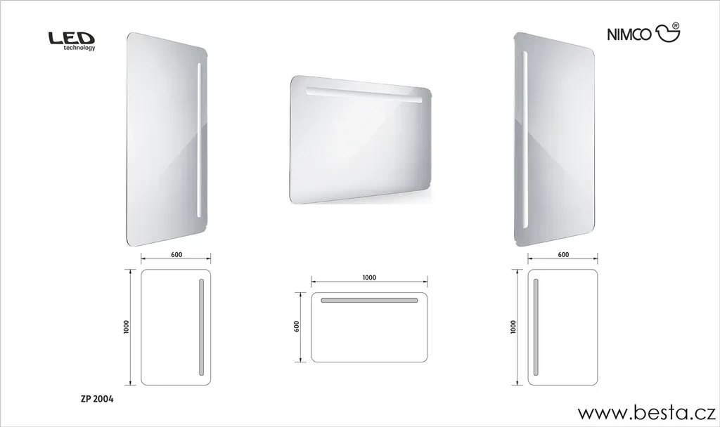 NIMCO Ľad zrkadlo zrkadlo LED 1000x600 rám hliníkový ZP 2004 Kúpeľňové podsvietené LED zrkadlo. Výkon 13 W, teplota chromatickosti 6000-6500K.