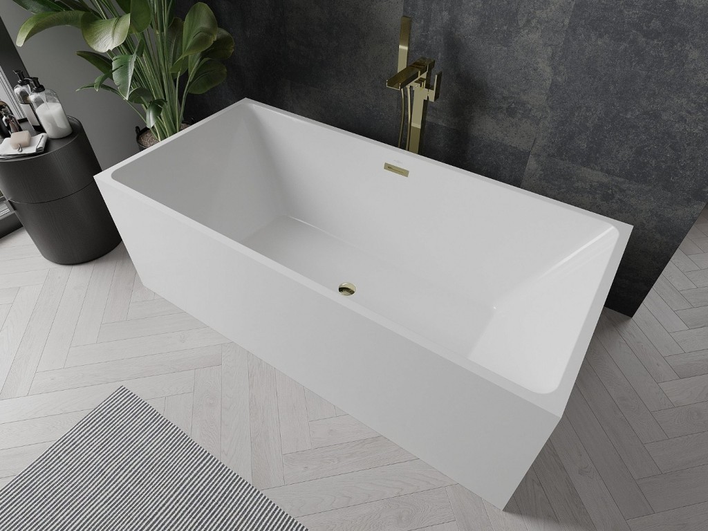Voľne stojaca obdĺžniková akrylátová vaňa série NITA od výrobcu MEXEN s prepadom a umiestnenom odpade na stred vane.