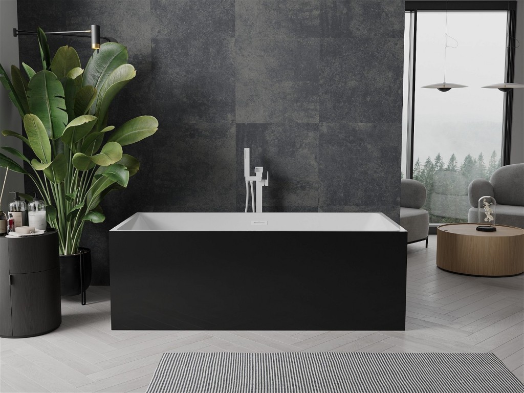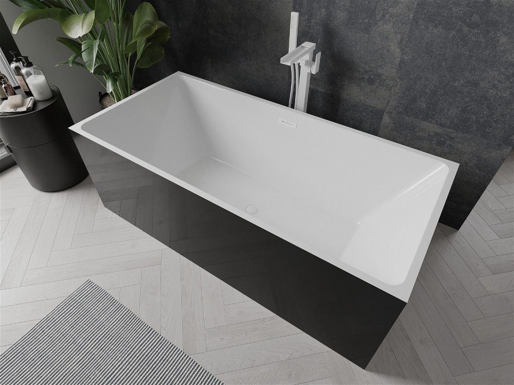 Voľne stojaca vaňa Nita je elegantným a funkčným riešením do každej kúpeľne. Jeho obdĺžnikový tvar a biela a čierna povrchová úprava mu dodávajú moderný vzhľad. click-clack, čo uľahčuje inštaláciu a používanie.