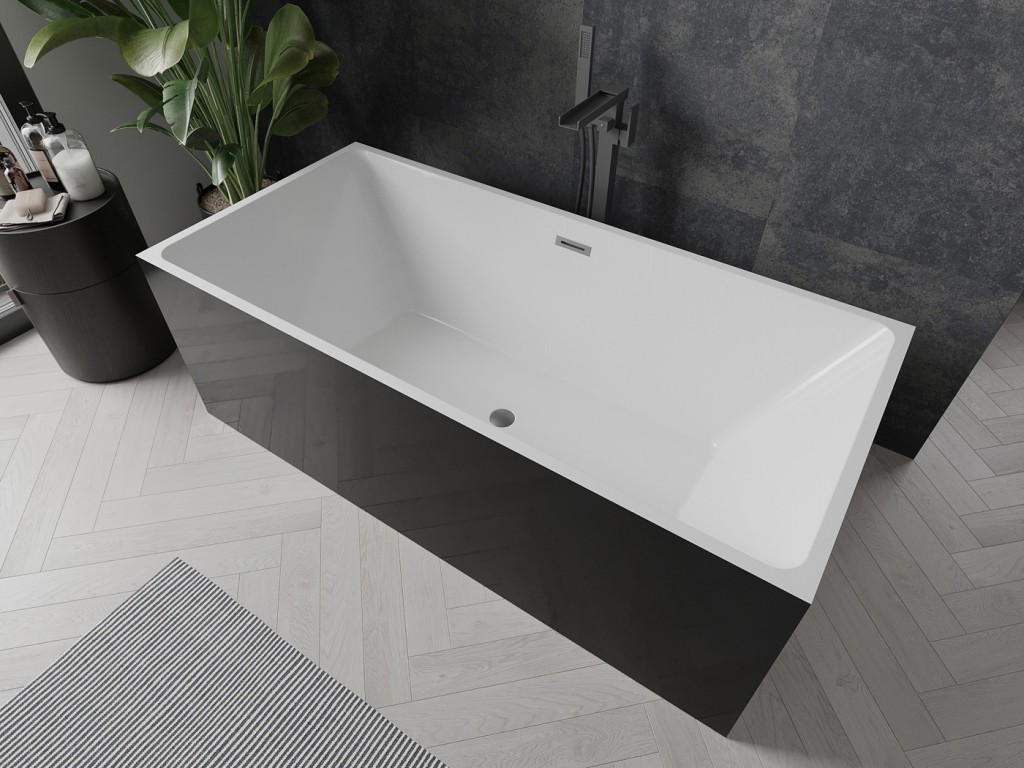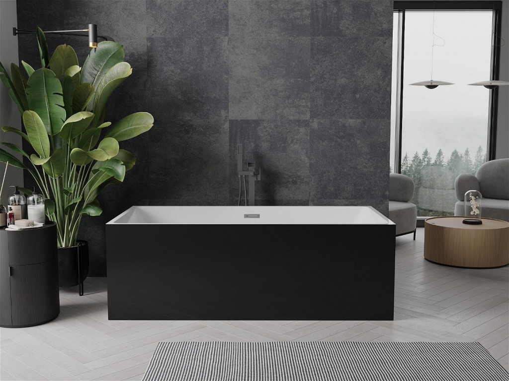 Mexen Nita je elegantná voľne stojaca vaňa s rozmermi 170 x 80 cm určená do moderných kúpeľní. Vyrobené zo sanitárneho akrylátu, je vysoko odolné voči zašívaniu a UV žiareniu. Kombinácia bielej a čiernej farby mu dodáva jedinečný štýl a povrchová úprava gun metal dodáva modernosť. Vaňa je vybavená prepadovým otvorom a hotovým sifónom so zátkou click-clack, čo uľahčuje používanie a inštaláciu. Minimalistický obdĺžnikový tvar sa skvele hodí do rôznych aranžmánov.