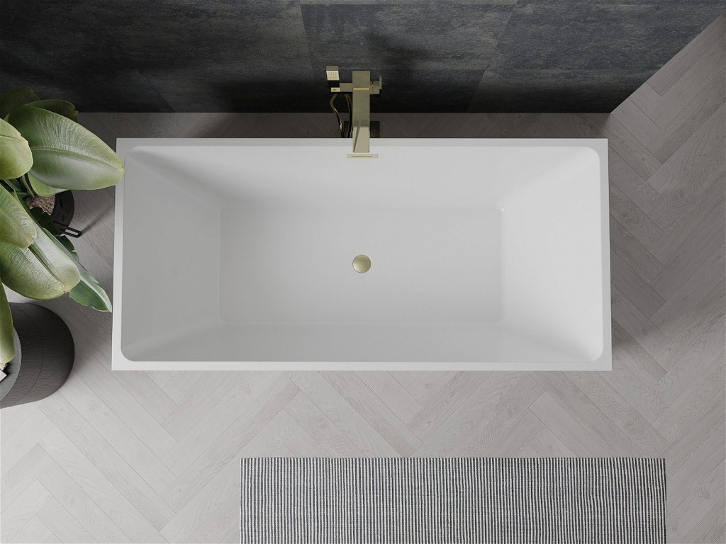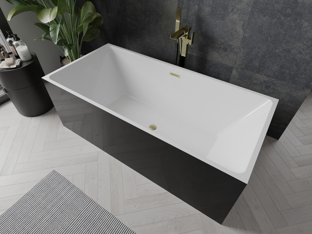 Voľne stojaca vaňa s rozmermi 170 x 80 cm je elegantným prvkom každej kúpeľne. Vyrobené zo sanitárneho akrylátu, je odolné a ľahko sa čistí. Jeho moderný dizajn v bielej a čiernej farbe so zlatým kartáčovaným povrchom dodáva luxusný charakter. Vaňa je hlboká 45 cm a vysoká 58 cm, čo zaručuje komfort používania. Funkčný prepadový otvor a pripojený sifón navyše uľahčujú inštaláciu a používanie.