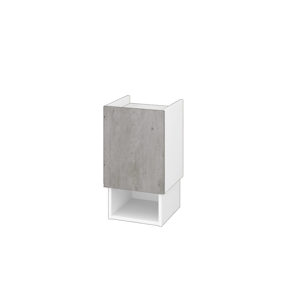 Dodatočný priestor poskytuje spodná otvorená nika. Tá slúži na uloženie drobnejších predmetov a ako spájací článok s druhou skrinkou.
