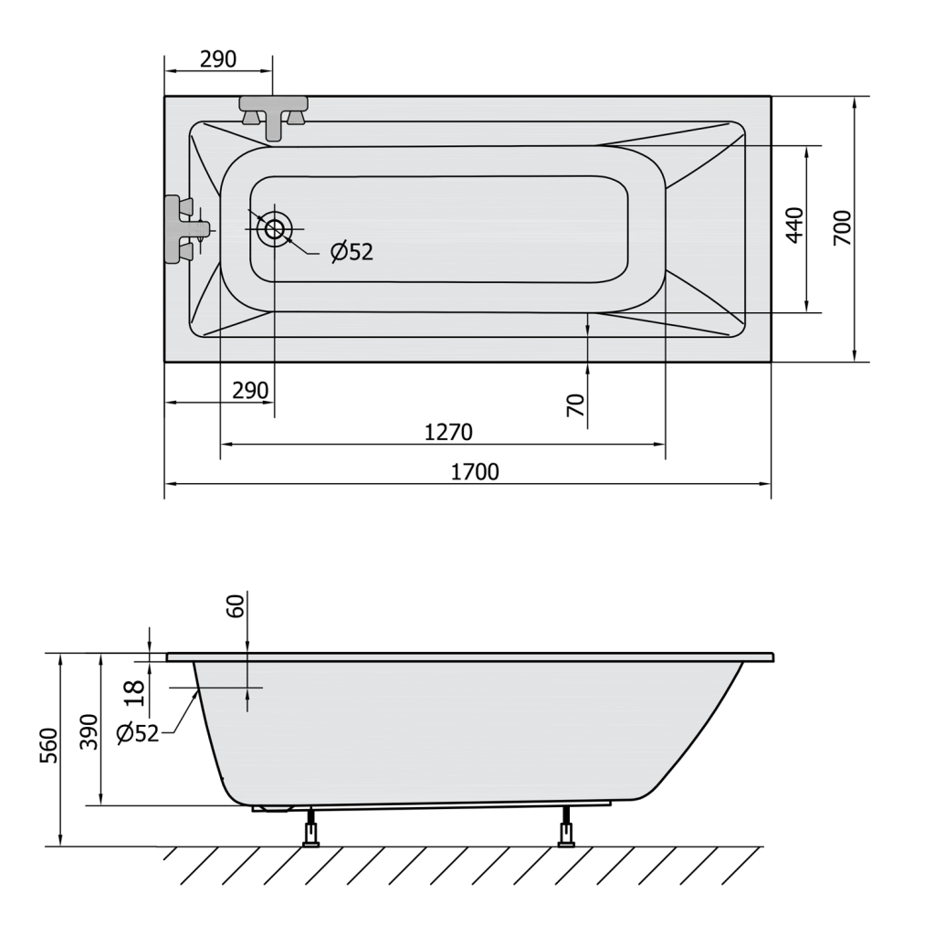 Vaňa má oproti štandardným vaniam výšku hrany okraja iba 18 mm. Pri obmurovanie tak pôsobí estetickejšie. Nemožno ju inštalovať s obkladovým panelom.