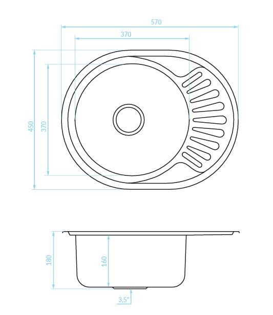Drez má jednu komoru o hĺbke 160 mm a celkové rozmery 570 × 450 mm. Je vhodný na inštaláciu do spodnej skrinky od 50 cm šírky. Vďaka obojstrannému prevedeniu je možné orientáciu drezu prispôsobiť konkrétnym potrebám kuchynskej linky.