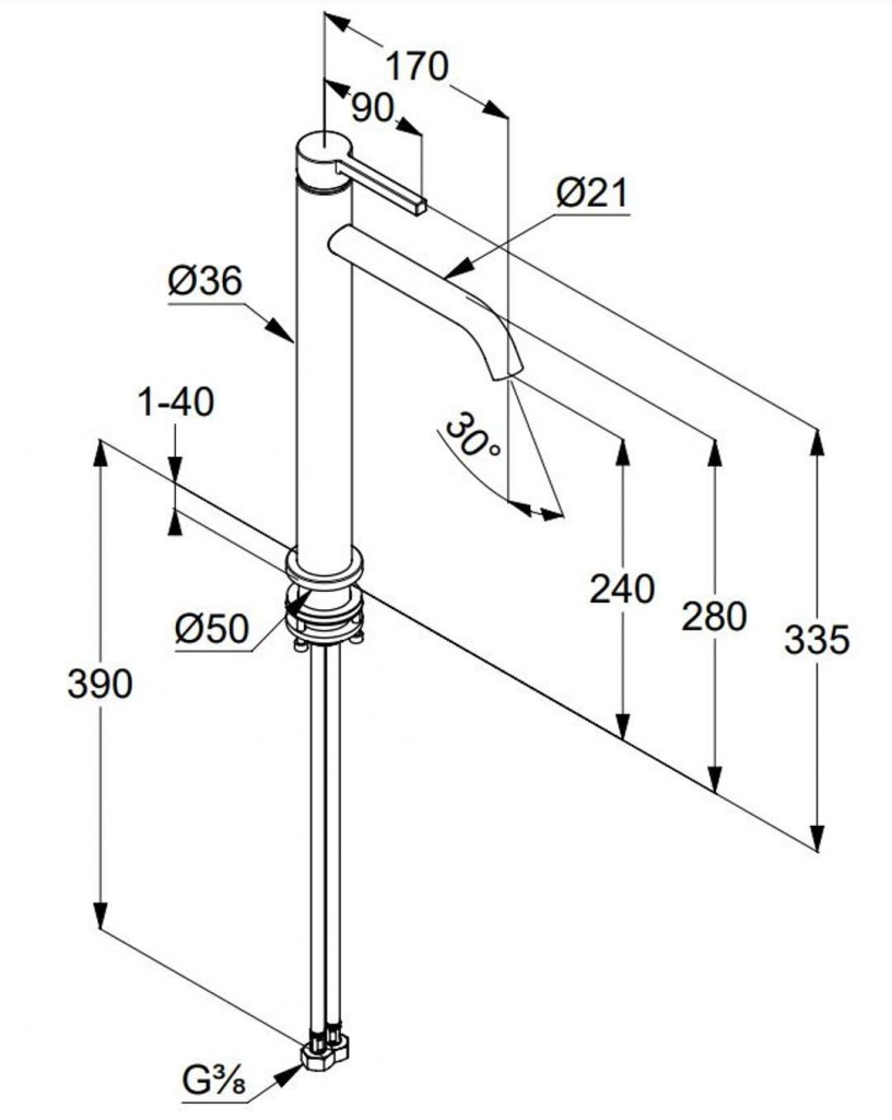 - flexibilné prípojky G 3/8