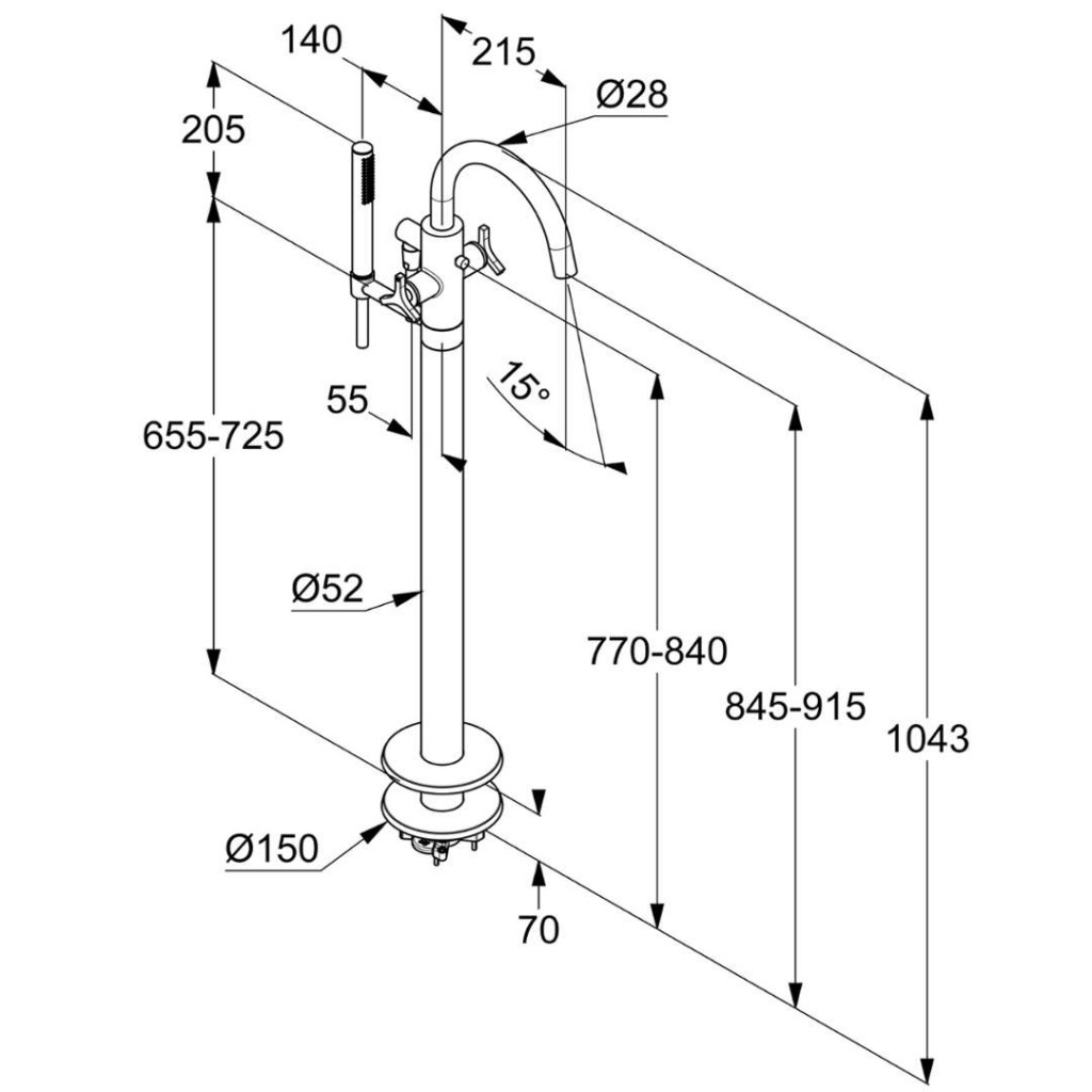 - podlahová montáž pre voľne stojace vane