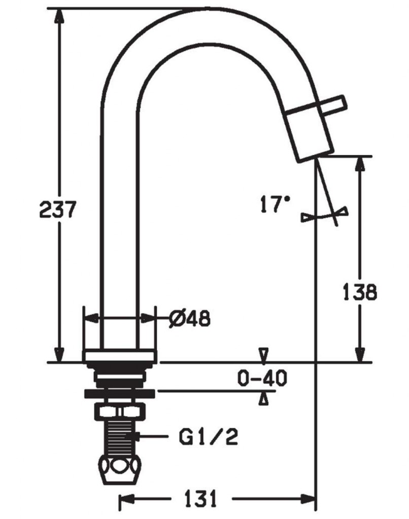 - dĺžka výtoku: 131 mm