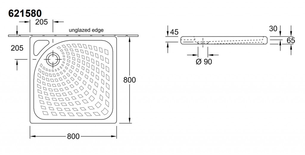 Štvorcová sprchová vanička s drobnými protišmykovými výstupkami