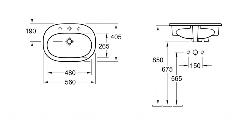 Zápustné umývadlo na dosku alebo kúpeľňovú skrinku