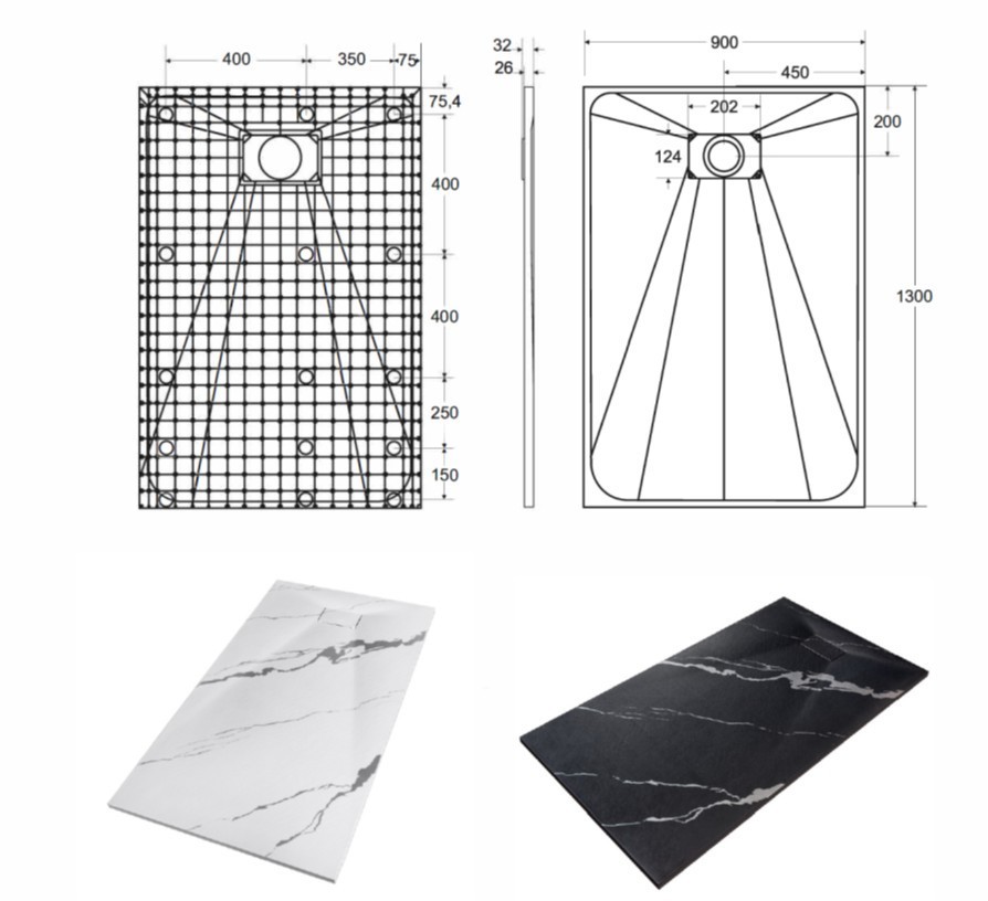 Elegantná ultratenká sprchová vanička VEXO MARBLE ČIERNA je vyrobená zo špeciálneho SMC materiálu. Dodáva sa vrátane sifónu, ale bez nožičiek. Krytka sifónu je súčasťou balenia.
