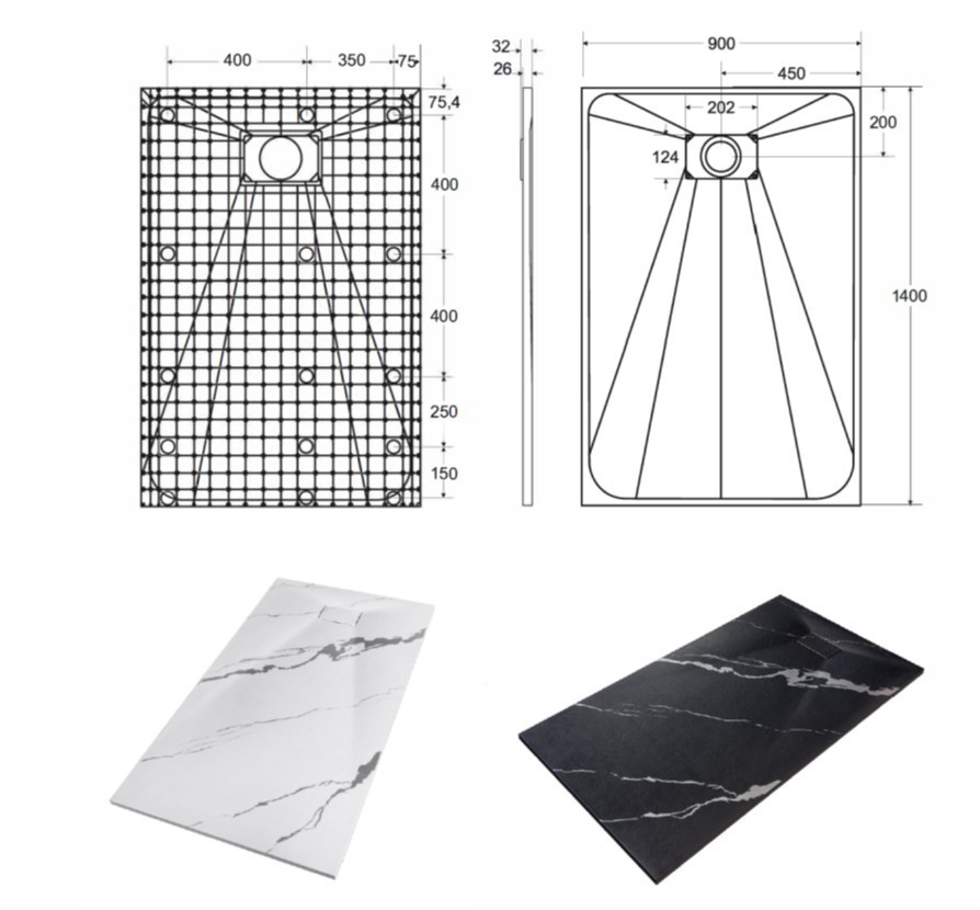 Elegantná ultratenká sprchová vanička VEXO MARBLE ČIERNA je vyrobená zo špeciálneho SMC materiálu. Dodáva sa vrátane sifónu, ale bez nožičiek. Krytka sifónu je súčasťou balenia.