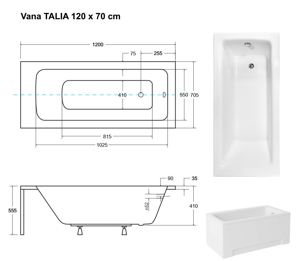 Obdĺžniková vaňa TALIA vyniká vysoko kvalitným spracovaním a spoľahlivou funkčnosťou všetkých súčastí a materiálov.