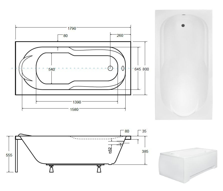 Uvedená cena je iba za holú vaňu. Možnosť dokúpenia setu čelného a bočného panelu, ktoré sú iba na objednávku (cena na dopyt)