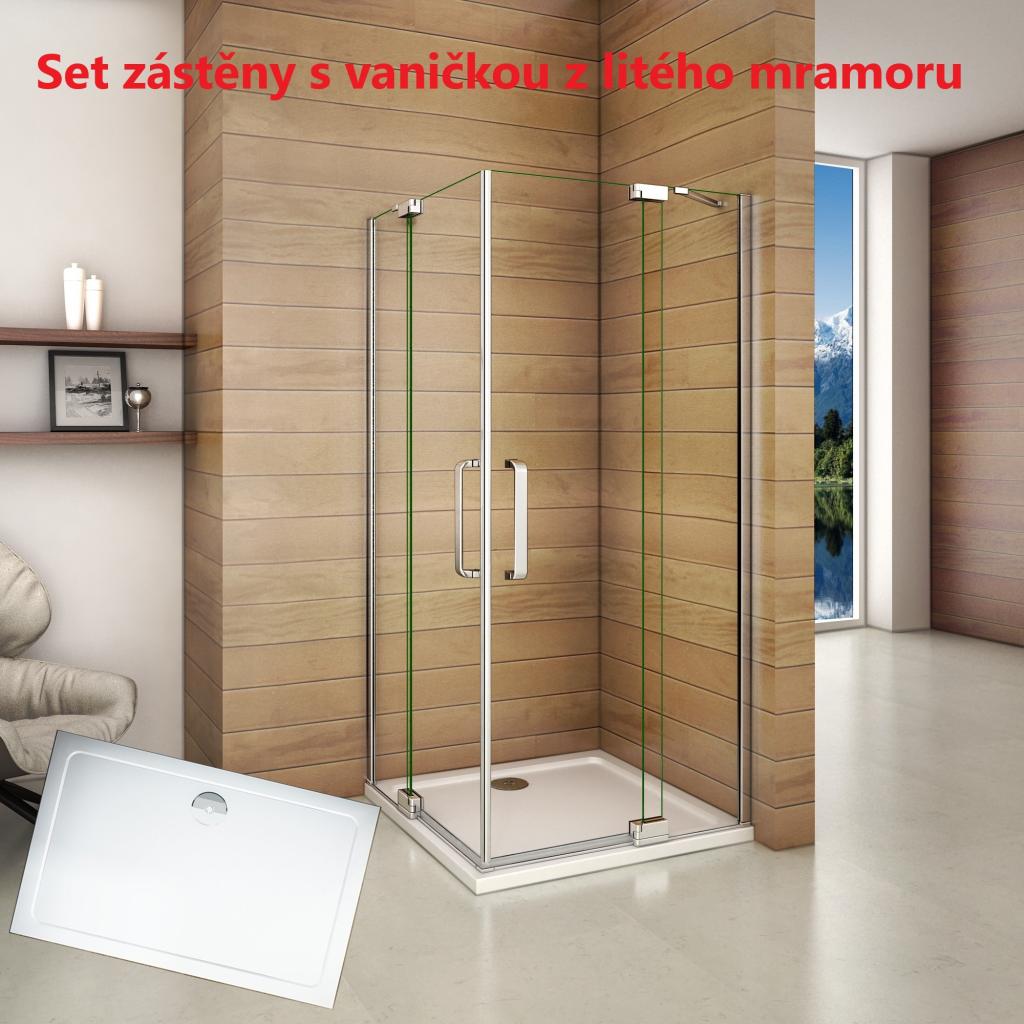 Obdĺžnikový sprchovací kút AIRLINE R108, 100x80 cm, s dvomi jednokrídlovými dverami s pevnou stenou, rohový vstup vrátane sprchovej vaničky z liateho mramoru