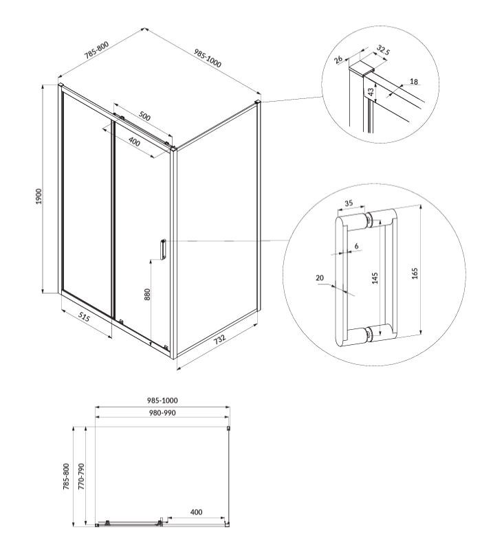 Sprchovací kút ARTECO je vyrobený z 5 mm hrubého tvrdeného bezpečnostného skla, ktoré zaisťuje štrukturálnu stabilitu a bezpečnú prevádzku. Sklo je opatrené ochranným hydrofóbnym povlakom CleanPro , ktorý účinne zabraňuje usadzovaniu vodného kameňa a nečistôt, a uľahčuje tak jeho údržbu. Sprchovací kút je vybavený posuvným dverným systémom s dvojitými chrómovanými valčekmi v hornej a dolnej časti, ktoré zaisťujú plynulé otváranie a zatváranie dverí. Rýchloupínacie spodné valčeky umožňujú ľahké vybratie dverí sprchového kúta. Kút je tiež vybavený funkčným stenovým profilom, ktorý sa prispôsobí nerovnostiam steny až o 15 mm. Obojstranné rukoväte z vysoko kvalitného kovu kombinujú odolnosť a funkčnosť. Tento obdĺžnikový rohový sprchovací kút je vysoký 190 cm, s dverami širokými 100 cm a stenou širokou 80 cm a je vybavený priehľadným sklom. Profily sú čierne. Kút je určený na inštaláciu so sprchovou vaničkou alebo priamo na podlahu.