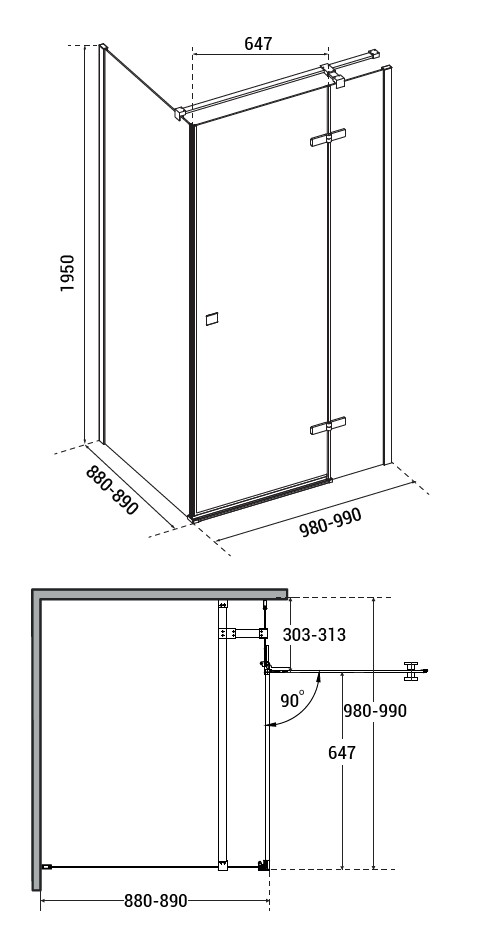 • 100 × 90 × 195 cm (montážny rozmer 98 - 100 × 88 - 90 cm)