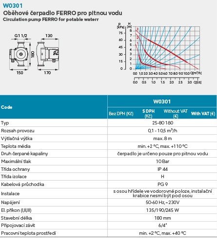 Oběhové čerpadlo FERRO pro pitnou vodu