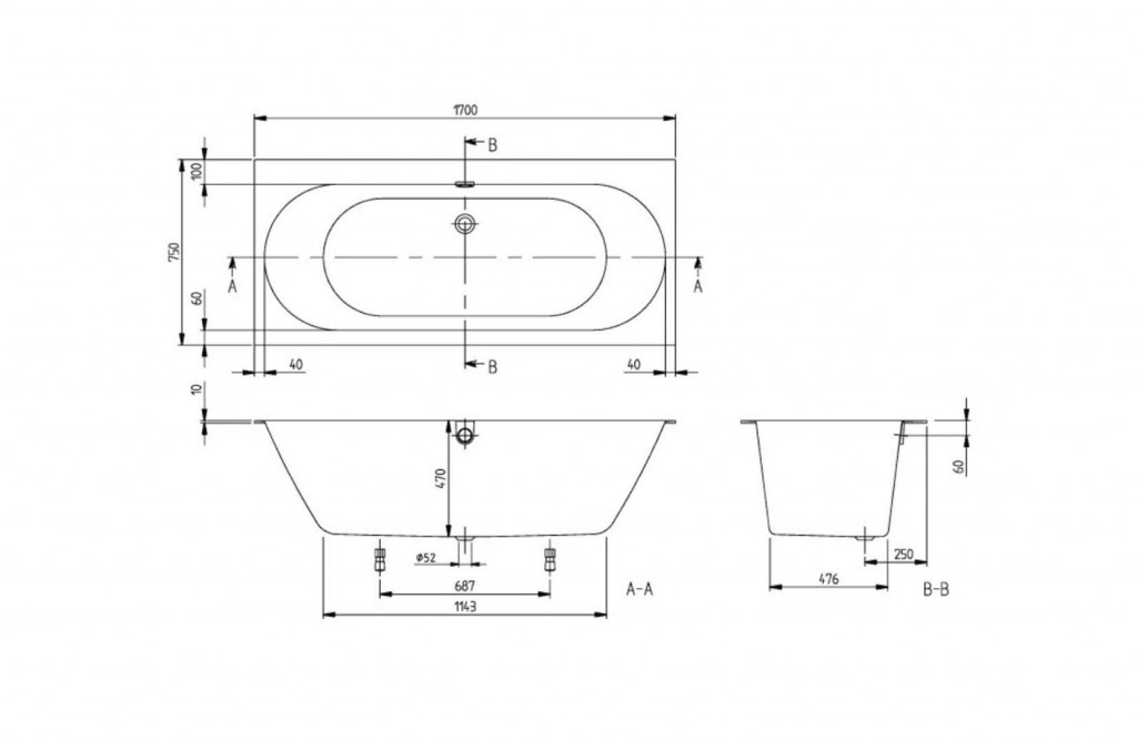 - Podstavné samolepiace nožičky na inštaláciu vane sú súčasťou dodávky, nastaviteľné 130-180 mm