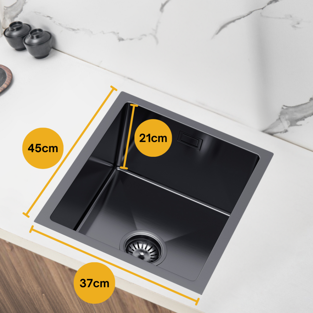 Kuchynský drez z nerezovej ocele 37 x 45 so sifónom je praktickým a štýlovým riešením do každej modernej kuchyne. Je vyrobený z kvalitnej INOX ocele s kartáčovaným saténovým povrchom, ktorý je odolný, ľahko sa udržuje a pôsobí elegantne.