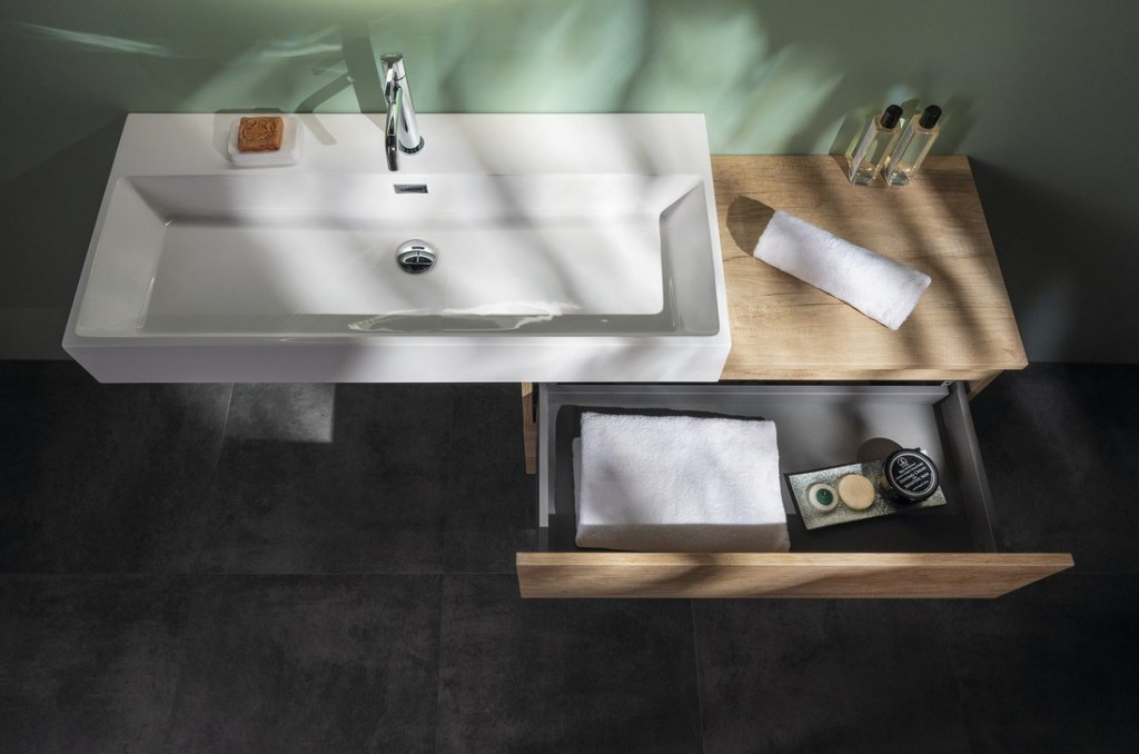 Séria ODETTA ponúka umývadlové skrinky v kombinácii s 3 druhmi umývadiel - keramické KARE, z liateho mramoru GODIVA a betónové QUADRADO. Séria je tiež navrhnutá pre vybrané umývadlá na postavenie. Rozmerovú variabilitu umožňuje kombinácia umývadlových a spodných skriniek. Bezúchytkové zásuvky sú vybavené výsuvmi BLUM s tlmeným dovieraním. Horná zásuvka je bez výrezu pre sifón, čím sa zvyšuje úložná plocha zásuvky. Medzi zásuvkami je hliníková lišta CHANEL v čiernej alebo bielej farbe. Na prianie je možné dodať lištu aj v zlatej farbe.