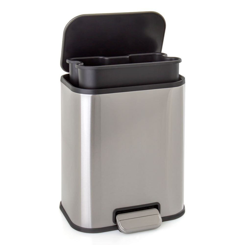 5-litrový odpadkový kôš je vyrobený z nerezovej ocele, vyznačujúci sa tzv. kartáčovanou úpravou. koše je navyše vybavený vnútorným plastovým košom, opatreným ergonomickými držadlami, výrazne uľahčujúcimi proces vyprázdňovania.