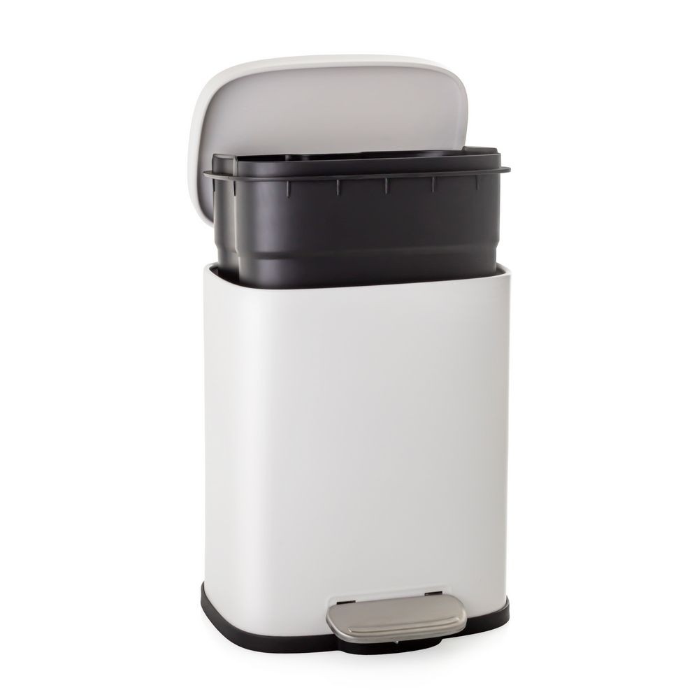 3-litrový odpadkový kôš, dostupný v bielej farbe, je vyrobený z lakovanej ocele. Jeho funkčnosť bola ďalej vylepšená systémom SOFT CLOSE, ktorý zaručuje pomalé zatváranie veka, vďaka čomu je jeho používanie pohodlné a tiché. Veko odpadkového koša sa otvára pohodlným nožným pedálom, takže sa nemusíte ohýbať pri likvidácii odpadu. Vnútro odpadkového koša je navyše vybavené vnútorným plastovým košom, opatreným ergonomickými držadlami, výrazne uľahčujúcimi proces vyprázdňovania. Tento kôš tiež umožňuje umiestnenie vriec na odpadky, ktoré zaisťujú, že nie sú vidieť, keď je odpadkový kôš zatvorený, čo prispieva k udržaniu hygieny. Tento malý 3-litrový odpadkový kôš sa skvele hodí ako odpadkový kôš do kúpeľne, ale aj ako doplnok do kancelárie, pracovne alebo spálne.