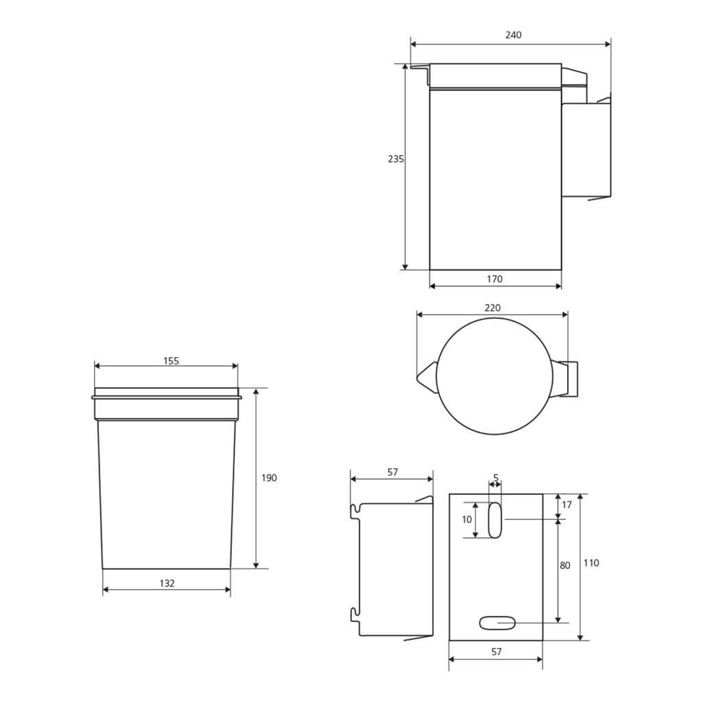 Kôš obsahuje vnútornú vyberateľnú nádobu z odolného plastu umožňujúcu pohodlnejšiu manipuláciu.