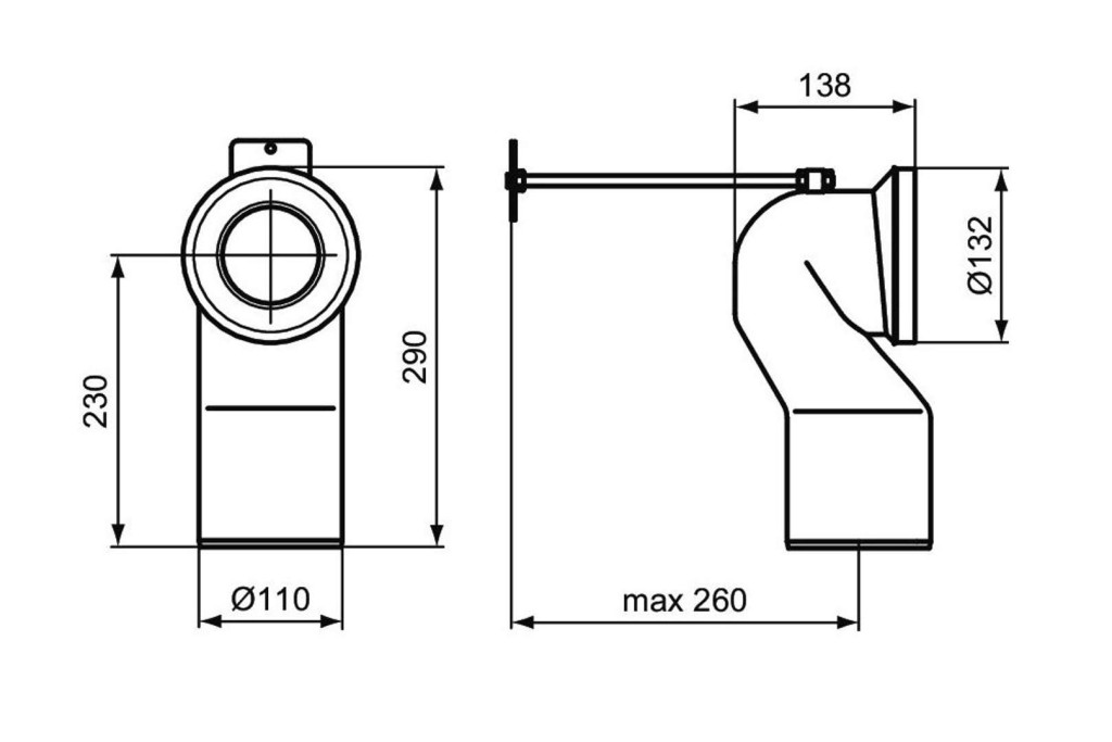 - pre 125–135 mm vzdialenosť (od steny k drenážnemu otvoru)