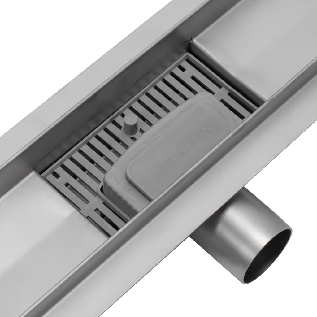 S lineárnym odtokovým žľabom Neo Pure vytvoríte elegantný nerezový prvok, alebo takmer neviditeľný odtok, čo uvítajú predovšetkým minimalistické designy kúpeľní.