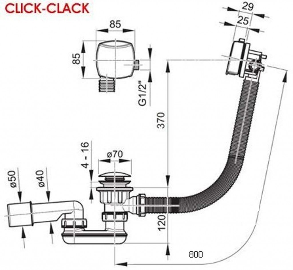 Odtokový komplet s napúšťaním prepadom je inštalovaný v prípade použitia vaňové podomietkové batérie. Voda nateká prepadom vane a regulácie prebieha cez podomietkovú batériu. Vyrobené sú z najkvalitnejších materiálov a líšia sa dĺžkou, mechanizmom a dizajnovým riešením. Pomocou ClickClack mechanizmu stlačením / zošliapnutím odtokovú zátku zatvorte a opätovným stlačením / zošliapnutím opäť otvorte. Ovládanie odtoku je hranaté s povrchovou úpravou chróm.