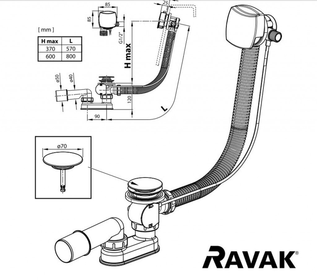 Vaňové odtokové komplety s dĺžkou 800 mm sú vhodné pre vane Formy 01, Formy 02, City / City Slim.
