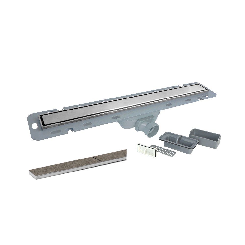 Odtokový žľab je dodávaný vrátane roštu. Jeho dizajn je jednoduchý a esteticky príjemný. Kombinácia sifónu a suché uzávery zabraňuje prenikaniu zápachu, v prípade vyschnutia sifónu. Možné otočenie a použitie pre vloženie dlažby.