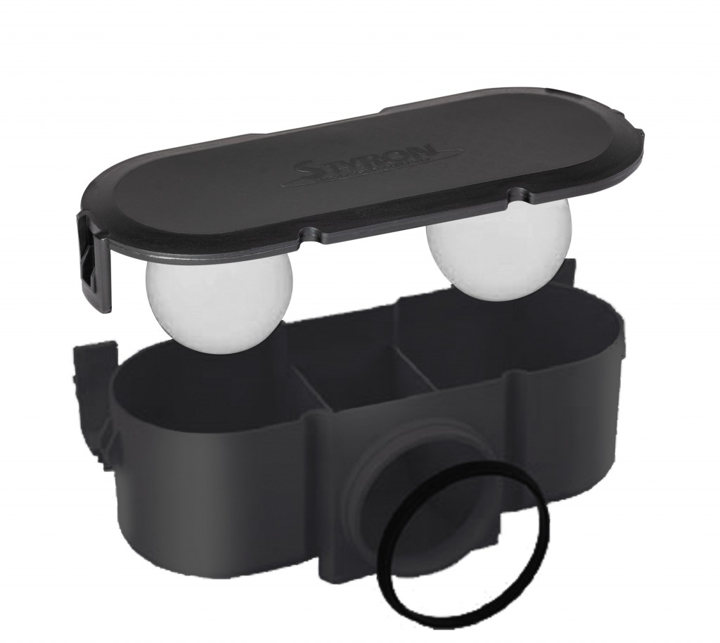 • Dvojitá zápachová uzávera, vodný stĺpec a gulička. Tzn. V prípade odparenia vody (podlahové kúrenie, nepoužívané byty atď.) gulička zaklapne otvor a zabraňuje vzlínaniu pachu
