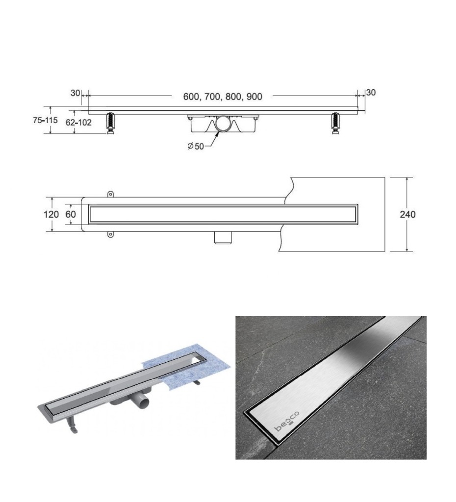 Kvalitne a moderne spracovaný odtokový žľab. T lo žľabu aj vlastné r OST je vyrobený z veľmi kvalitnej nereze, rošt s povrchovou úpravou kartáčovaný chróm. Rošt možno použiť buď pre vloženie dlažby, alebo ako pohľadový (kartáčovaný chróm). tento žľab obohatí každú kúpeľňu o nádych luxusu. Sada obsahuje: žľab so sifónom a nožičkami, rošt a hydroizolačné pásku.