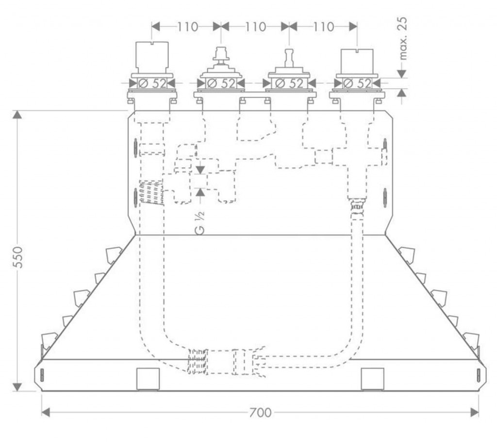 Montážne teleso pre čtyřtvorový termostat pre montáž na okraj vane