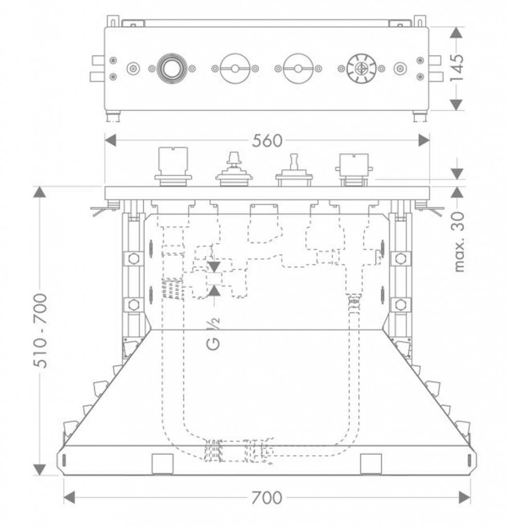 Základné teleso pre štvorotvorová vaňovú batériu pre montáž na sokel s termostatom