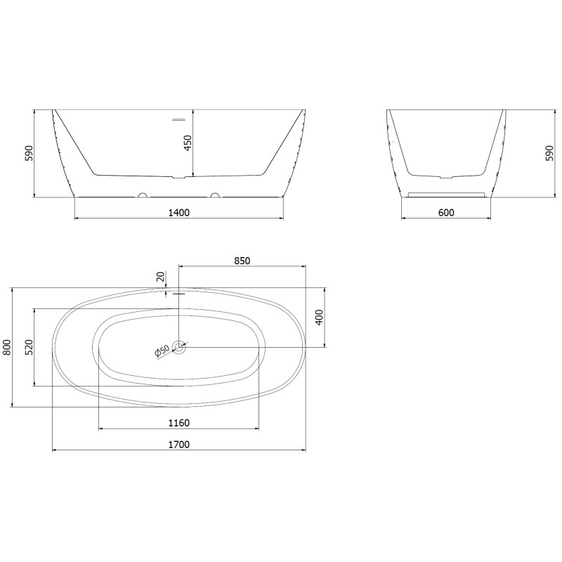 Špecifikácia produktu: Rozmery: 170 x 80 cm Výška: 59 cm Hĺbka: 45 cm Inštalácia: Voľne stojaci Materiál: Sanitárny akrylát Farba: Biela/Čierna Povrchová úprava: Strieborná Konštrukcia: Vzorovaná Otvor na prepad: Áno Otvor na batériu: Nie Sifón a zátka žiarenie