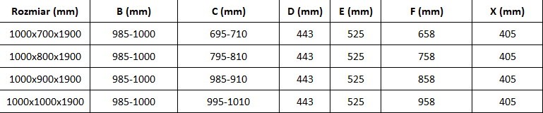 Inštalačný rozmer posuvných dverí do sprchového kúta je 985-1000 mm. Samotné dvere, ktorými budete vchádzať do sprchy, majú 52,5 cm . Tie sa ale vďaka kovovému madlu nezasúvajú celé, takže vstup do sprchy budete mať 40,5 cm .