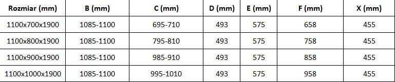 Inštalačný rozmer posuvných dverí do sprchového kúta je 1085-1100 mm. Samotné dvere, ktorými budete vchádzať do sprchy, majú 57,5 cm . Tie sa ale vďaka kovovému madlu nezasúvajú celé, takže vstup do sprchy budete mať 45,5 cm .